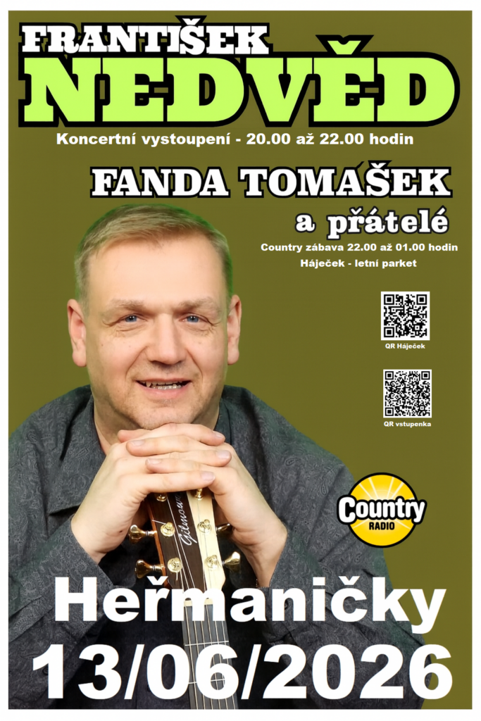 Zveme Vás na Country zábavu při příležitosti koncertu Františka Nedvěda. |